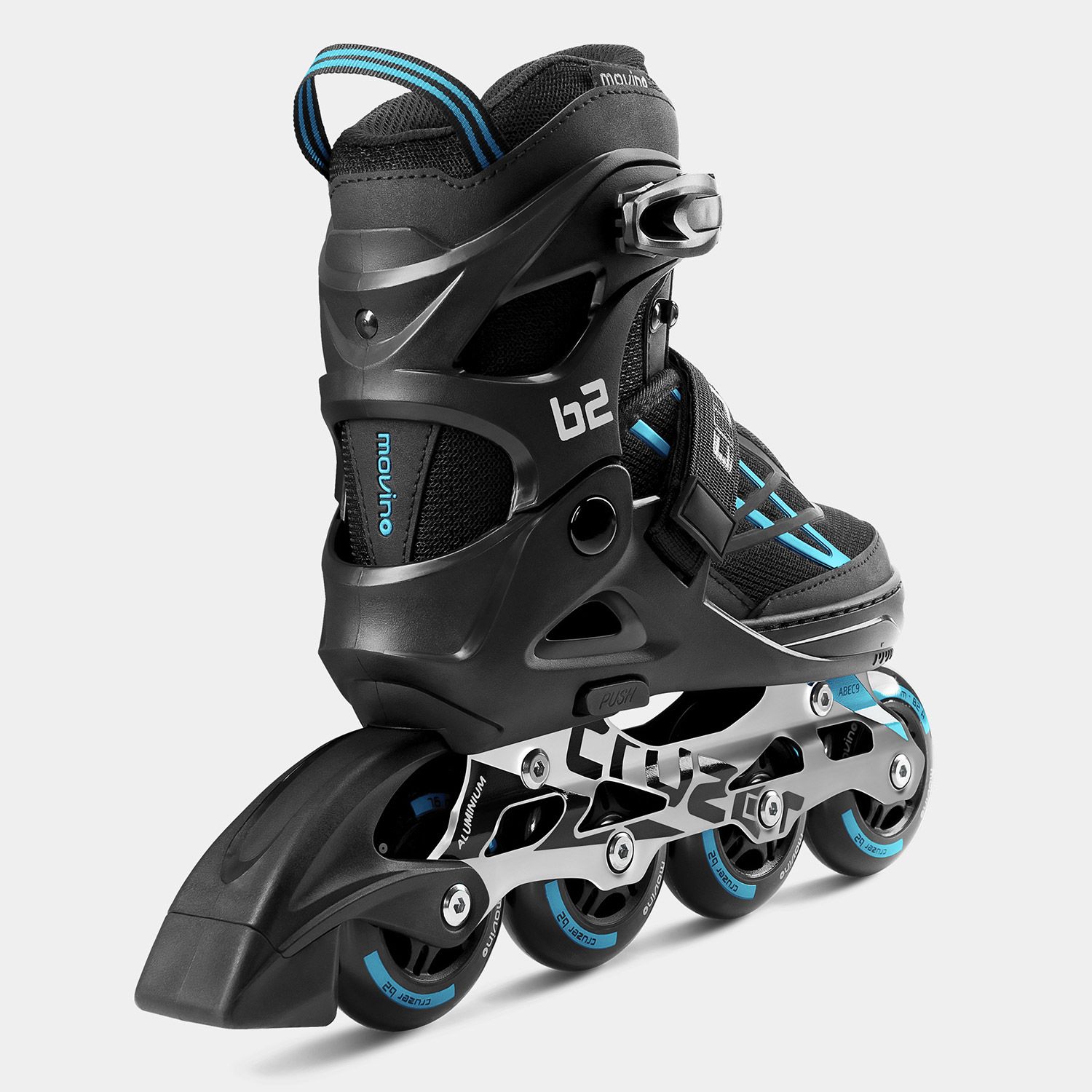 Movino Cruzer B2 skates are designed for several years of active skating. They feature a 4-step size adjustment. The adjustment system is quick and reliable. Simply press the “PUSH” button and set the appropriate boot length.