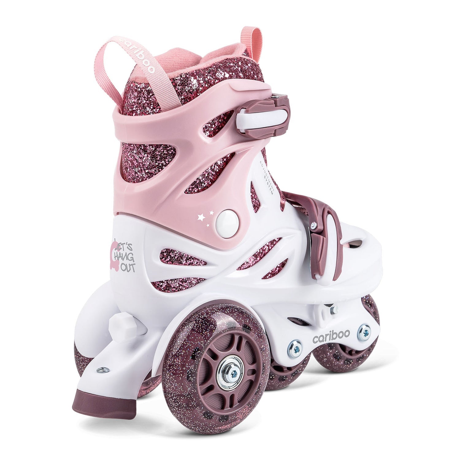 Cariboo Ballerina beginner roller skates support the youngest riders right from the first wear, providing instant stability and a feeling of security. The wheel setup is clever: two smaller front wheels (like traditional inline skates) and two larger rear wheels (like quad skates). This configuration helps maintain perfect balance and boosts confidence. It’s a method of learning that is associated with joy from the very beginning.