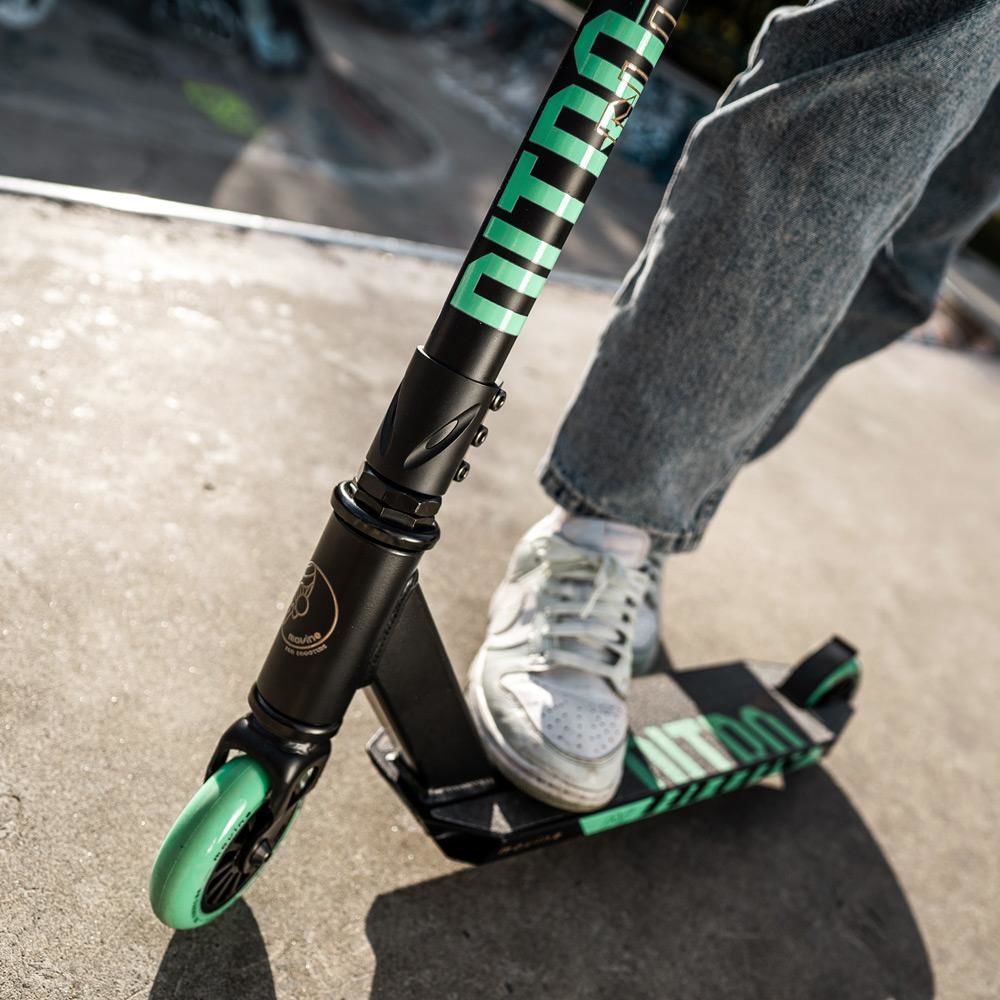 Nitro presenta colori audaci per rider audaci. Le ruote in nylon e le impugnature completano le grafiche sul deck e sul manubrio. Se stai cercando un monopattino che ti faccia risaltare al parco, Nitro è quello che fa per te – sorprendente, senza compromessi e visibile da lontano.