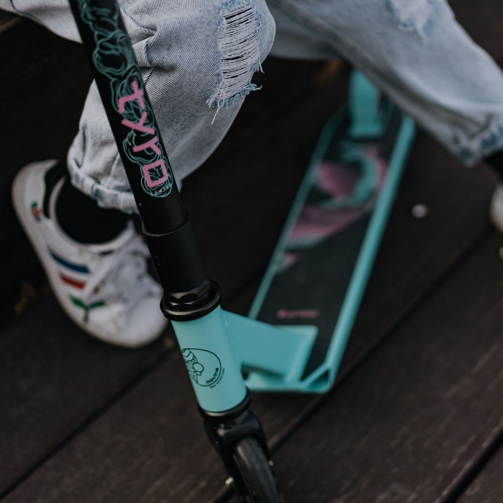 Vuoi entrare nel mondo delle acrobazie su monopattino? Il Movino Tyro è la tua risposta! Sviluppato in collaborazione con i rider professionisti del Team Movino, questo monopattino è disponibile in quattro sorprendenti varianti di colore. Il deck turchese decorato con un drago feroce, abbinato a manopole e dettagli delle ruote rosa, ti assicura di non dover scendere a compromessi su stile o qualità quando scegli il tuo primo monopattino freestyle.