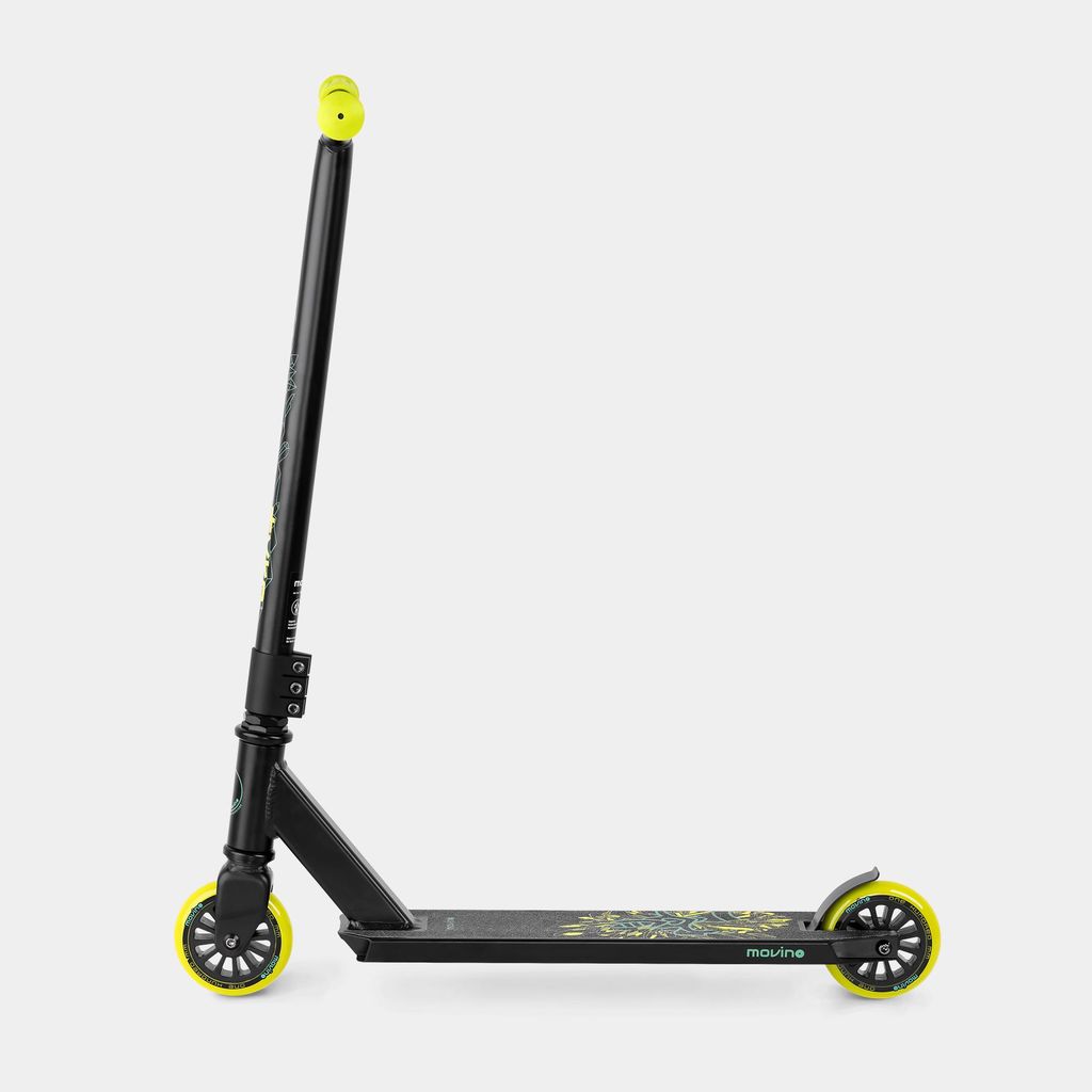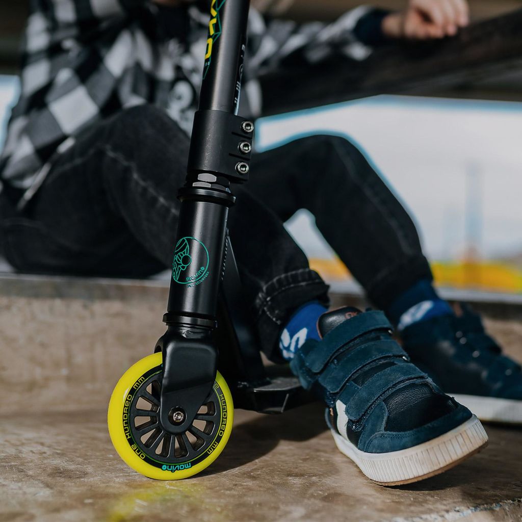 Il tuo giovane rider è pronto per lo skatepark? Ti consigliamo il monopattino Movino Tyro. Le sue caratteristiche, sviluppate in collaborazione con i rider del Team Movino, e il suo design elegante disponibile in quattro versioni, parlano da soli. Il set nero elegante con accenti rossi e l'iconico teschio Movino aggiunge un tocco di serietà a ogni trick! Con il Tyro, anche il tuo primo monopattino può combinare un look stiloso con la qualità.